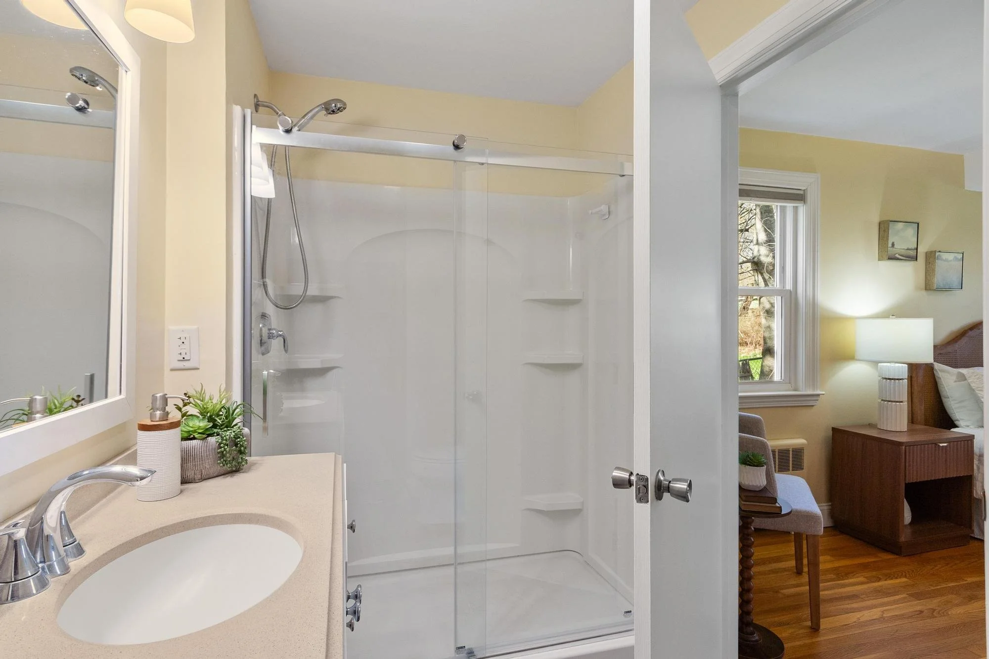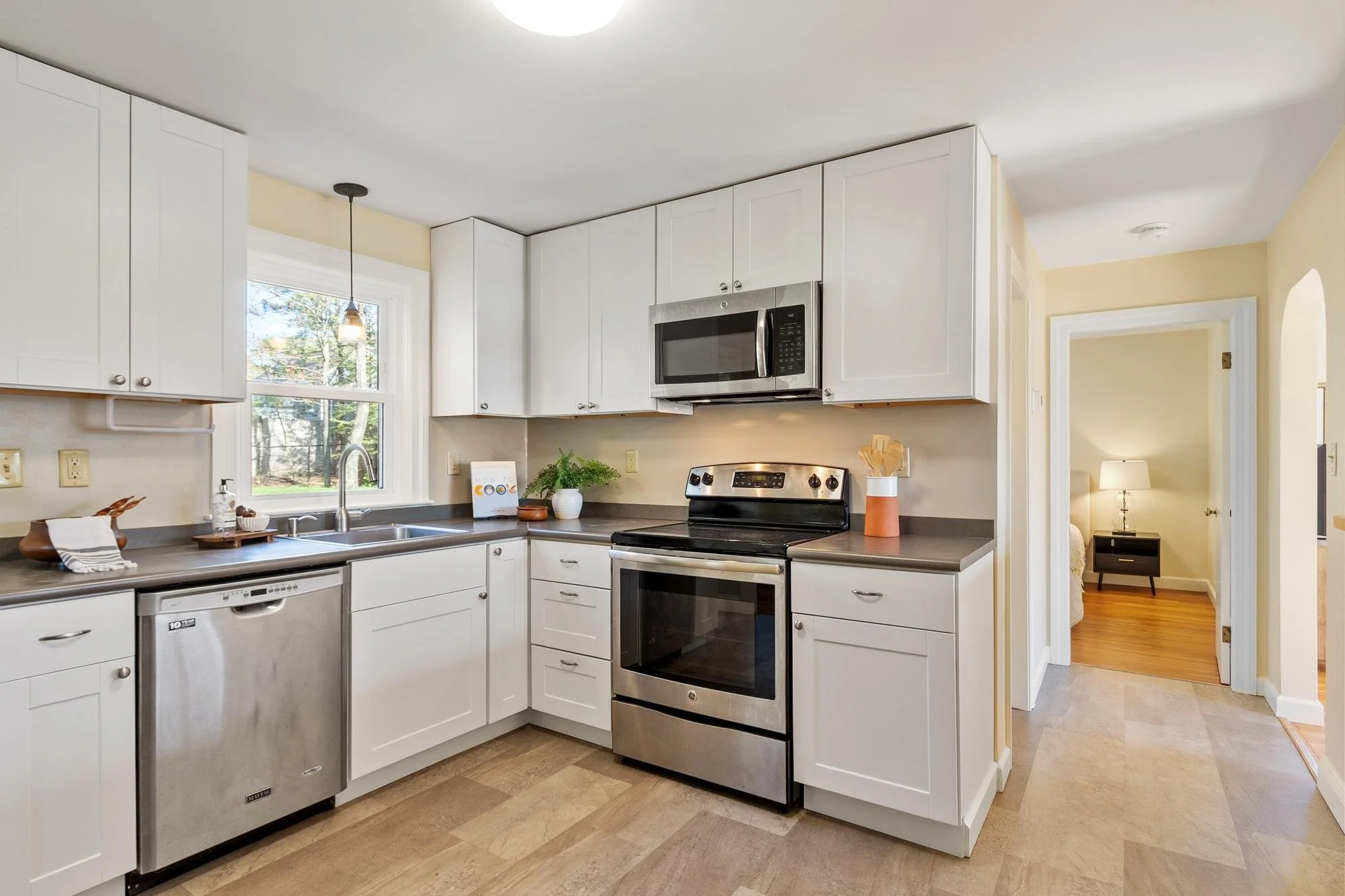 Rarely-available lakeside home with sunset views over glistening waters. Vacation at home in this sun-drenched abode, steps from Long Lake Beach.